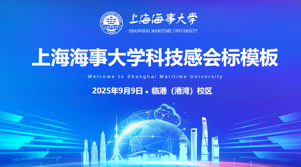 上海海事大学科技感会标模板带学校剪影(PPTX格式)