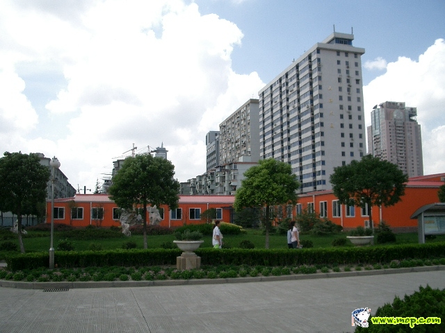 原民生路校区新海楼教室,后方高层为山海大厦和海联大厦