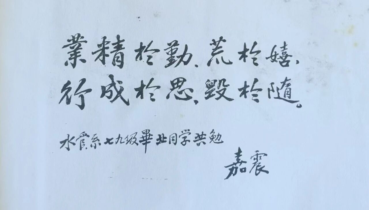 陈嘉震教授为79级财会专业题写了纪念册扉页