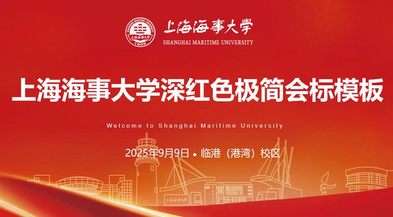 上海海事大学红色极简会标模板带学校剪影(PPT格式)